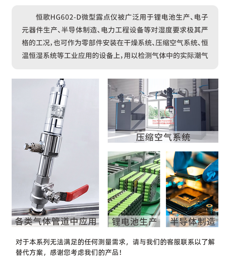 恒歌HG602-D微型露點變送器專為極干燥環(huán)境中的露點測量而設計,可提供快速、穩(wěn)定和可重復的測量性能具有一定的抗干擾、耐腐蝕、防坐防污染的性能。同時因體積小巧、集成度高,常安裝于空間有限的多種工業(yè)管道中。這是一款在性能、品質(zhì)、外觀設計、使用壽命方面與進口高端產(chǎn)品不相上下,部分性能指標已超越的極具性價比的露點變送器。